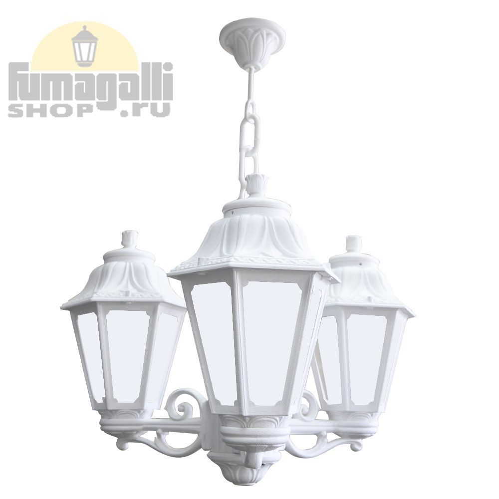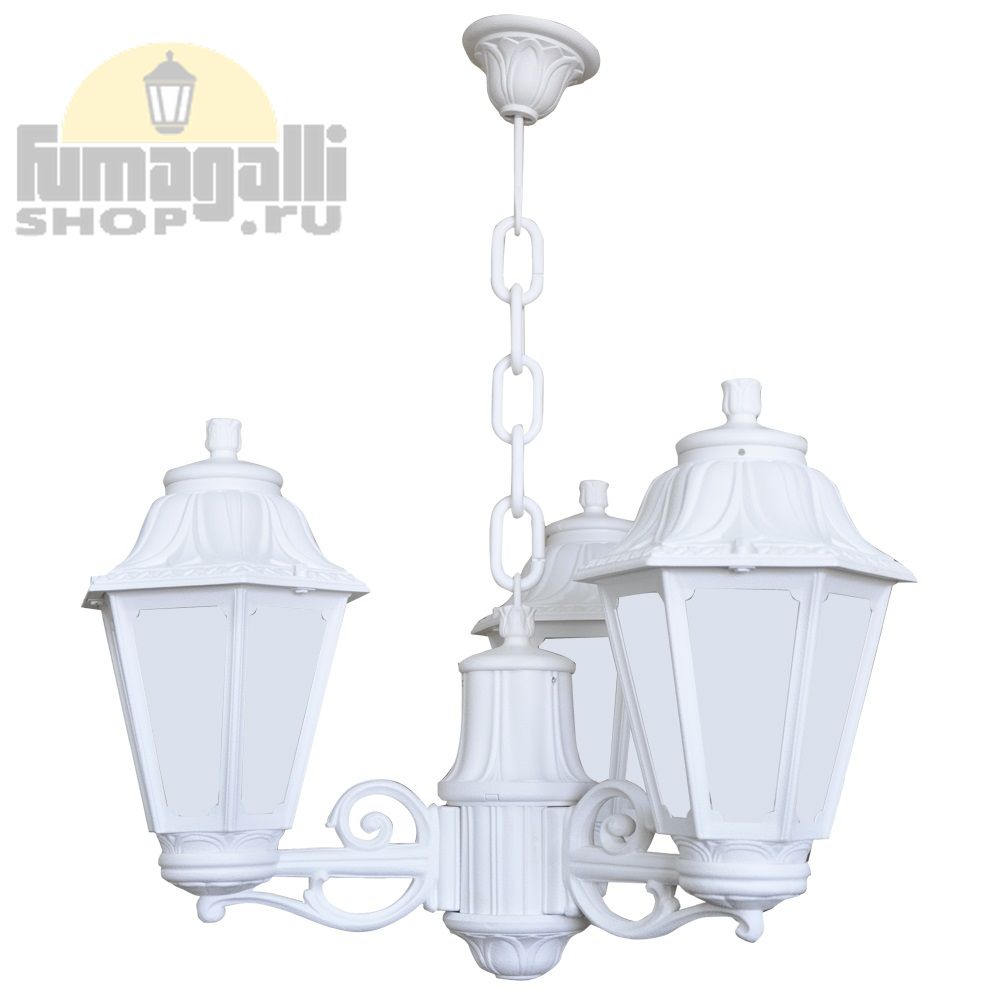 Подвесная белая люстра Anna на три головы со стеклами опал. Используется в открытых беседках, крыльцах и навесах.