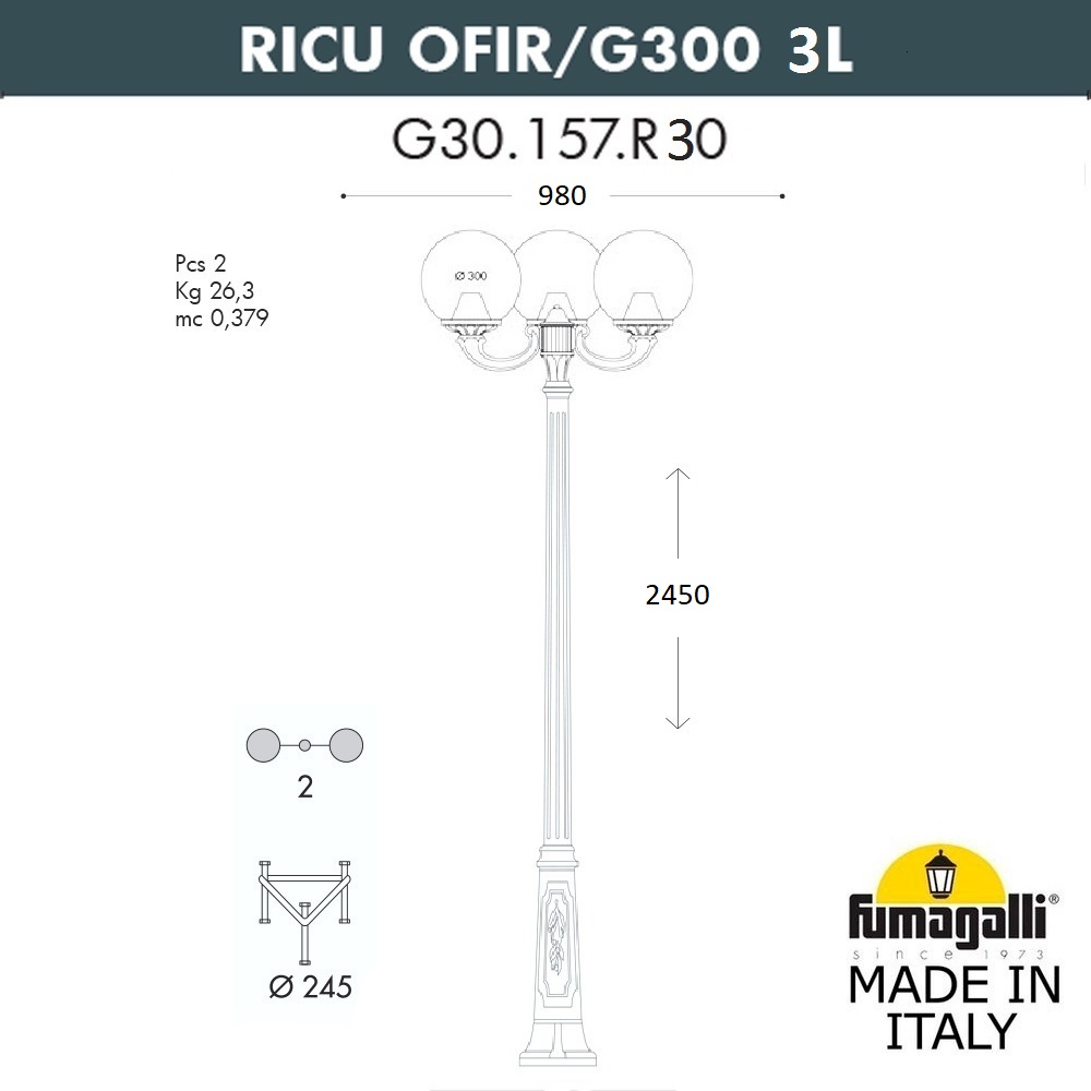 G30.157.R30.AYF1RУличный фонарь Ricu Ofir Globe 300 G30.157.R30.AYF1R Fumagalli
